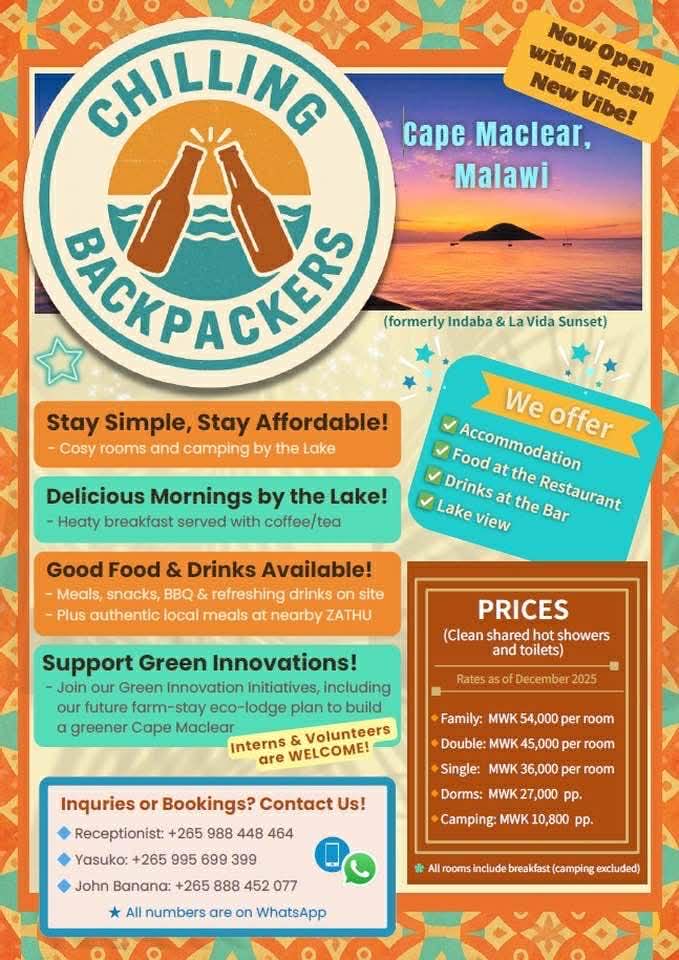 レイク&ビーチ沿い(マラウイ湖)、ローカル食堂 ZATHU から徒歩2分の立地。