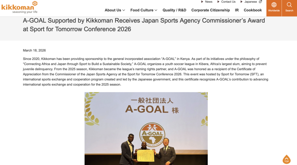 【メディア掲載】キッコーマンのグローバルサイトで紹介されました スポーツ庁長官感謝状授与式(SFTCカンファレンス)とその時に行ったインタビューの様子が、KIKKOMANさんのグローバルサイトで公開されました。 以下のリンクより、ぜひご一読ください。 https://www.kikkoman.com/en/news/2026/20260318_1449.html?fbclid=IwY2xjawQrma9leHRuA2FlbQIxMABicmlkETFOd2NaSWlNb2pVVkJWTTBYc3J0YwZhcHBfaWQQMjIyMDM5MTc4ODIwMDg5MgABHs82HaZQ10mreqW7xIs_FkJOx4-XaemKozqFV_Yw29Hc8KX8gWuFvxrbJWvU_aem_i2Fc-Ui3MCv6b6moksZOMA