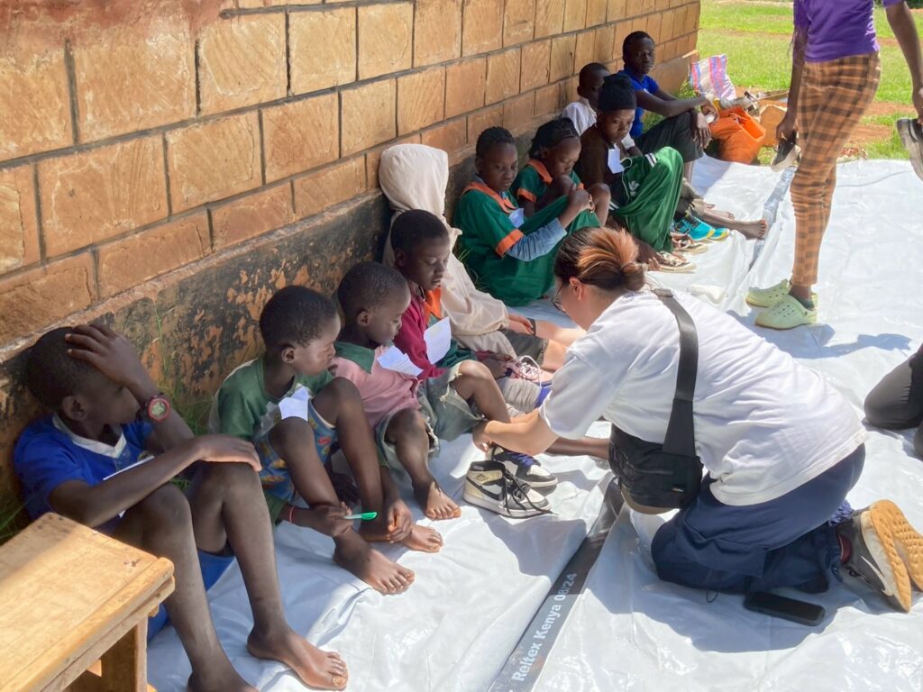 スナノミは乾いた砂地に生息し、素足で歩くことで足の指や足裏の皮膚に潜り込みます。放置すると腫れや潰瘍が進行し、歩行困難や二次感染で死のリスクにつながるケースも少なくありません。感染を防ぐためには、靴を履くこと・毎日石鹸で足を洗うことが有効とされていますが、貧困のため靴を持たない人々が多く、衛生知識も十分に知れ渡っていないのが現状です。